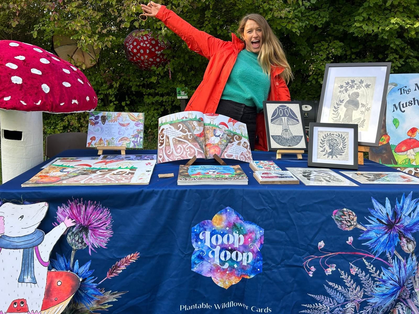 My name is Sophie and I’m the founder of Loop Loop, is a sustainable plantable card company, in which all the cards are created from recycled materials, and can be planted to grow a patch of wildflowers from the paper. The idea is that everything loops back round, to a new life. I’m also the writer and illustrator of my first (of hopefully many) children’s picture books, called The Mouse and the Mushroom Blooms.